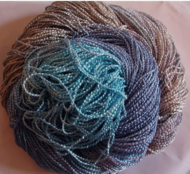 Comme les temps sont "calmes" - comme pour tout le monde, c'est la crise, j'ai pris un peu de temps pour tricoter certains de mes fils en écharpe - cela permet de se donner une idée de l'effet des fils une fois tricotés.